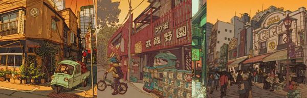 坂道に続く石畳、深い森に包まれた街道、静かな山里