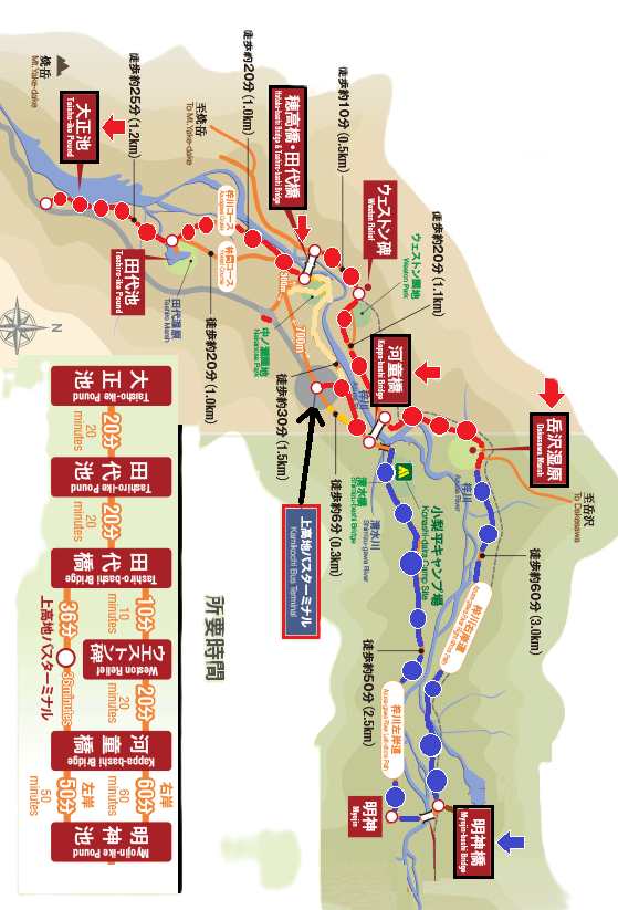 河童橋から【明神橋】まで行き(片道 約60分)折返して河童橋に戻る