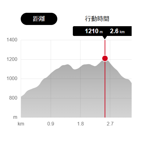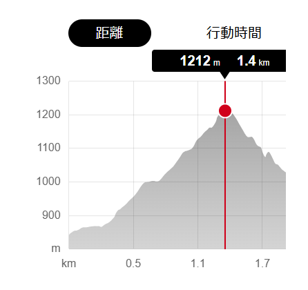 ● 乙女峠バス停 標高840 → 山頂 1,212m