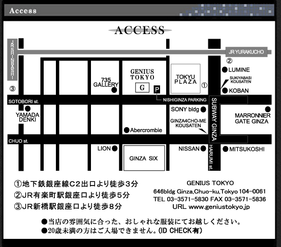 〈アクセス〉 ◎ 銀座駅: C4口から 徒歩 0分 ◎ JR有楽町駅: 「中央口」から徒歩4分 |