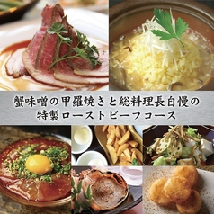 【2時間飲み放題付】 蟹味噌の甲羅焼きと総料理長自慢の特製ローストビーフコース 8品 4500円です