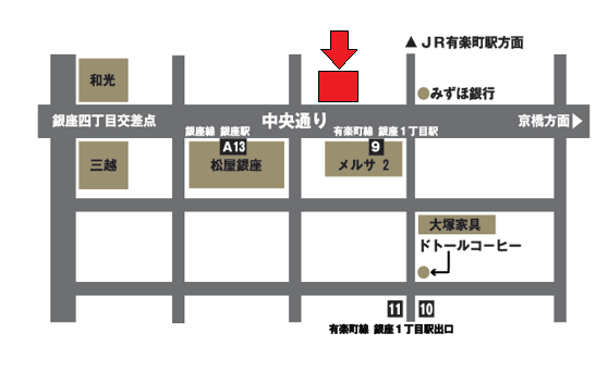 地下鉄 銀座駅 A13番出口 徒歩2分 |