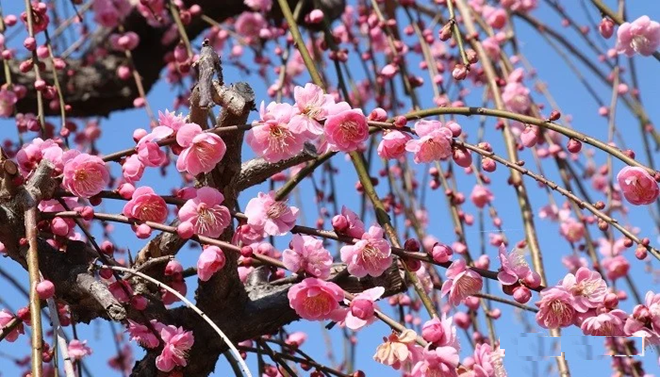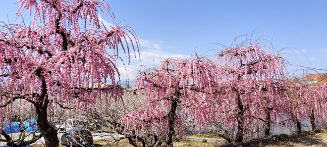 曽我梅林は品種が多いため、梅の種類や気候によって開花が前後しますが、一般に見頃は2月中旬〜2月下旬〜3月初旬頃です