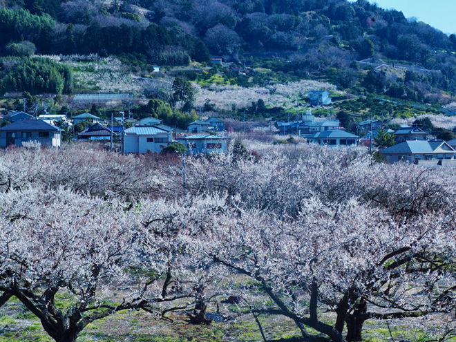 約35,000本の梅の木が咲き誇る梅林の観梅(白梅を中心に紅梅・枝垂れ梅なども)