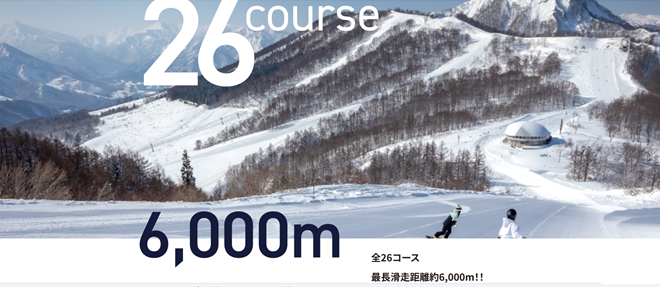 多彩なコースレイアウト、ロングコースが魅力のスキー場