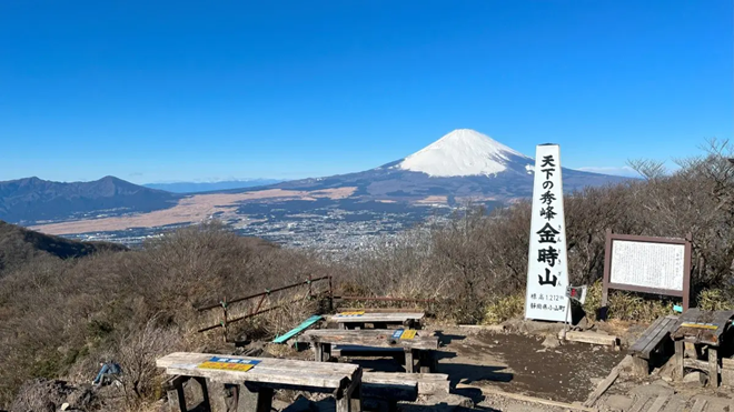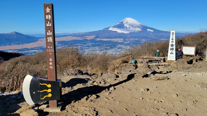 金時山(きんときやま)は、箱根外輪山の一つで標高1,212m。山頂は広く開けていて、関東屈指の富士山ビュースポットとして人気です。