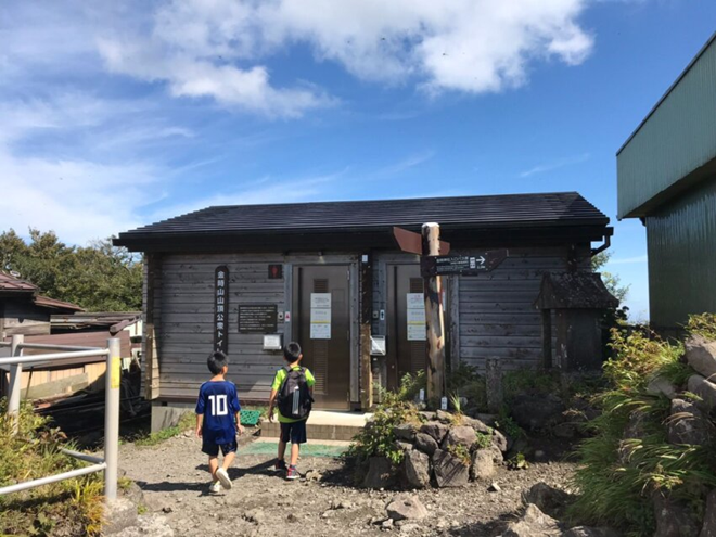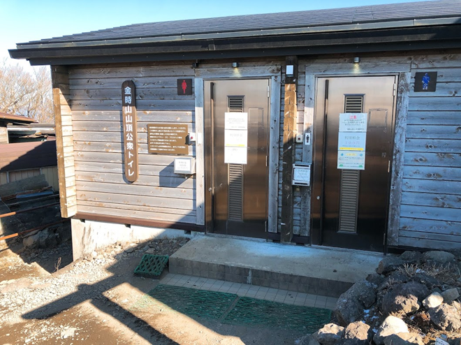金時山の山頂にはバイオトイレがあり、利用には維持管理協力金として200円が必要です。