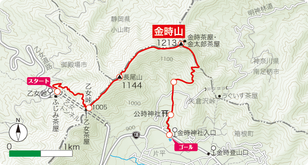 (山頂: 1211m) → (金時神社入口 699m)