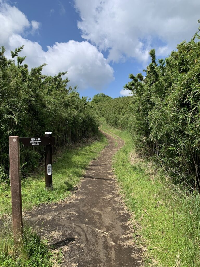 両側のクマザサが切り払われた登山道、明神ヶ岳への縦走路分岐を過ぎるとすぐに矢倉沢峠で金時山への登りにかかる。