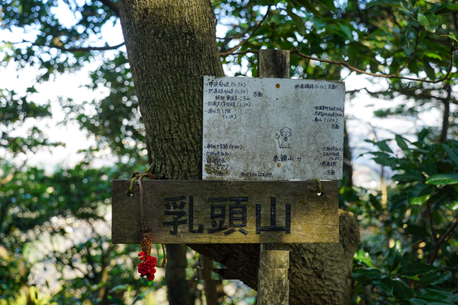 乳頭山の標高は202mと高くありませんが、三浦アルプス(二子山山系)の東端に位置しているため、三浦アルプスの中では眺望が良いピークの一つです