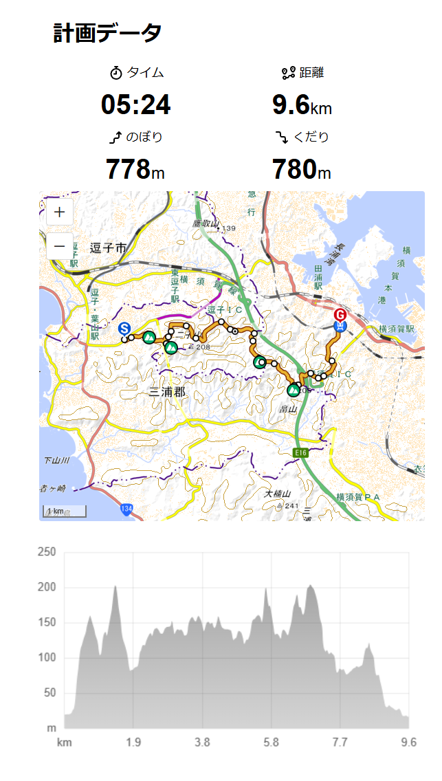 総コースタイム: 5時間00分 距離: 9.6km のぼり: 778m くだり: 780m