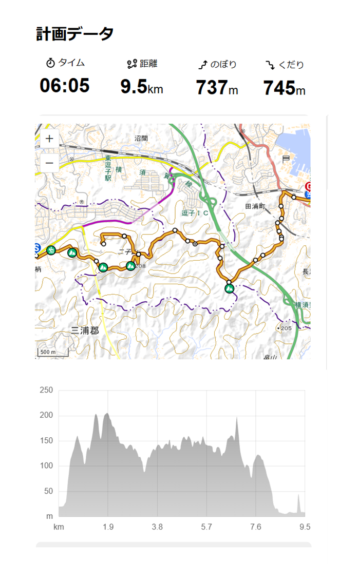矢落山(乳頭山) → 畠山 → 京急「安針塚駅」