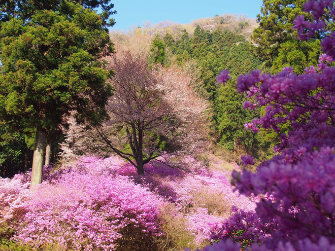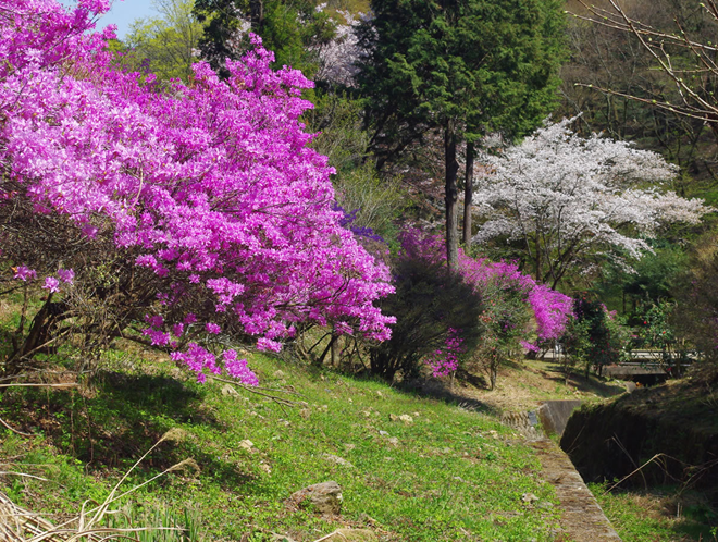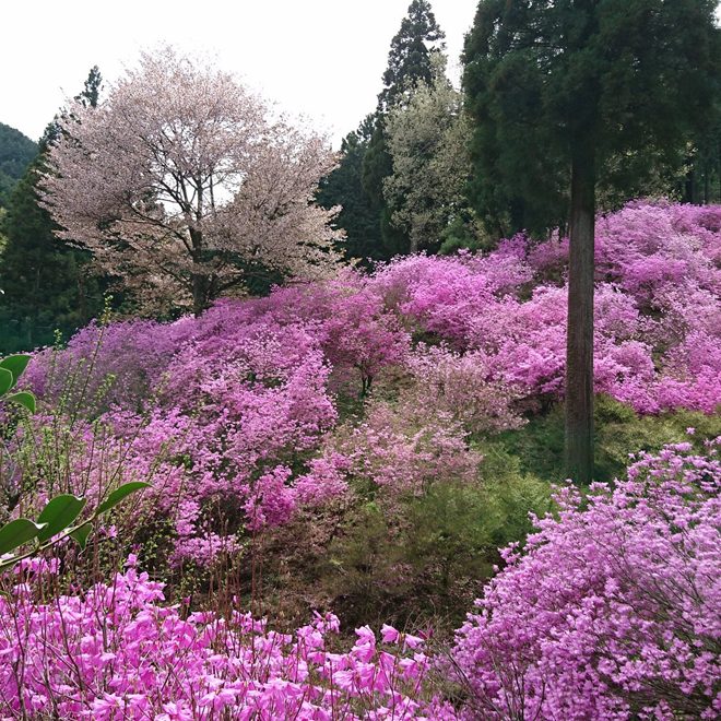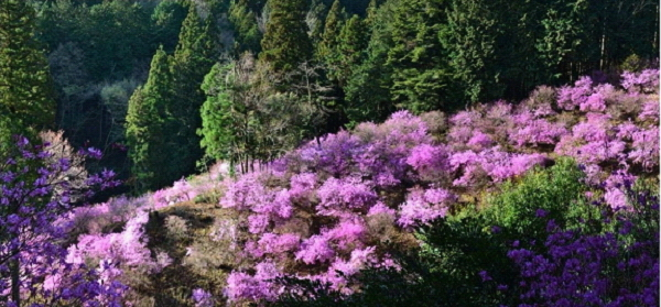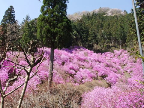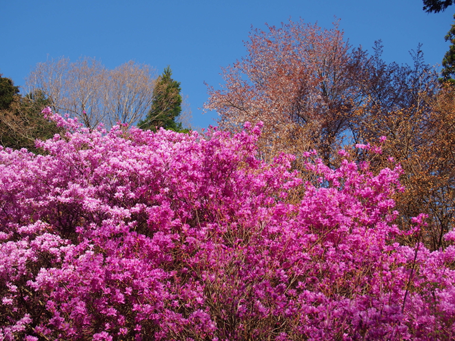 春の山麓には、ミツバツツジが咲き誇り見事です