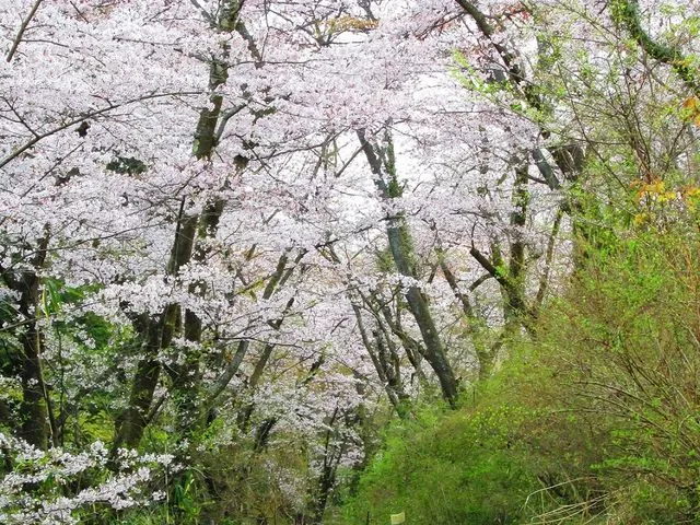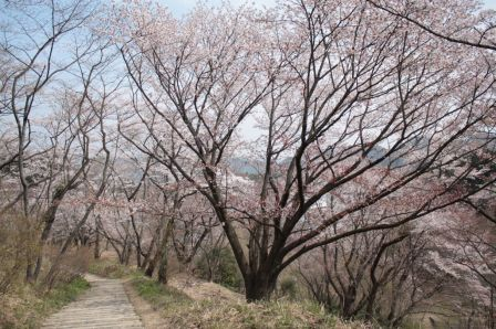 ソメイヨシノ、ヤマザクラなど400本あまりの桜が尾根に花のトンネルをつくります