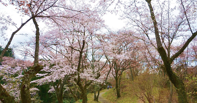 尾根にソメイヨシノやヤマザクラが植栽された小峰公園は、ハイキングをしながらサクラを楽しむことが出来ます