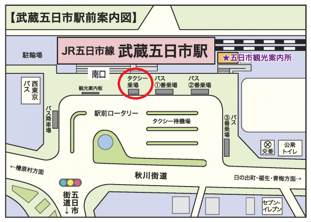 (1) 集合場所 武蔵五日市駅 下車 南口 駅前ロータリー 「タクシー乗り場」前に集合です
