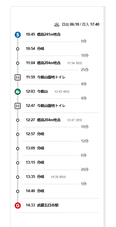 ⇒⇒ 武蔵五日市駅到着 9:48着 ⇒⇒ 武蔵五日市駅到着 10:13着