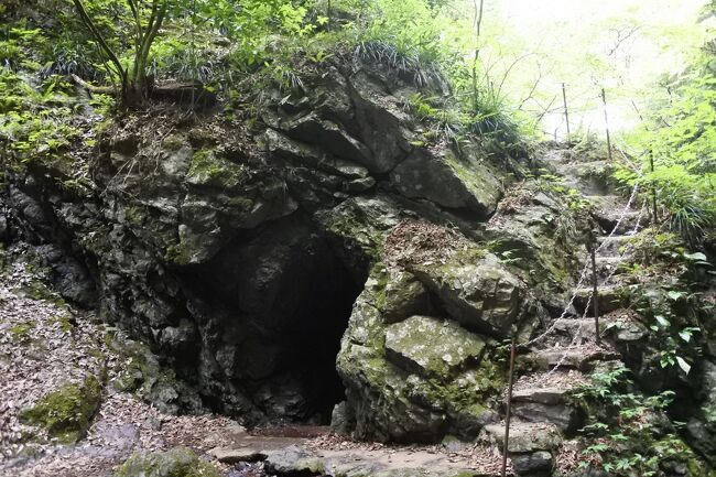 手前に、約4メートルの雌滝があり、その脇の岩のトンネルをくぐると約18メートルの雄滝があります