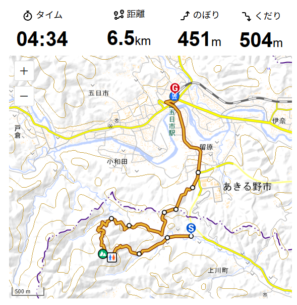 下山は小峰公園を経由し武蔵五日市駅へ戻るコースです