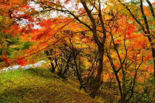 標高の高い場所ではモミジやカエデが色づき、鮮やかな紅葉が楽しめます。