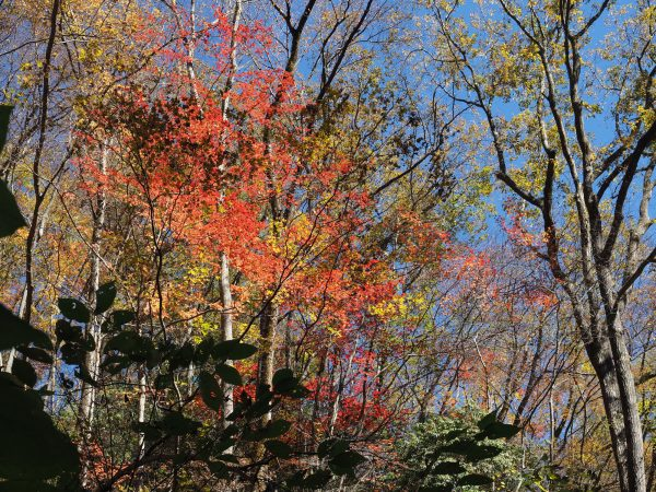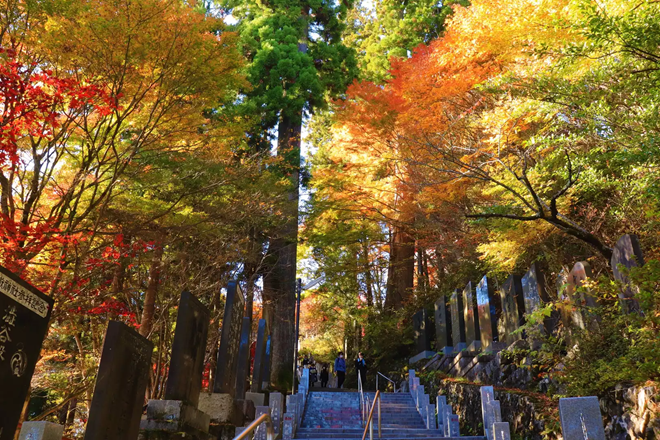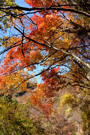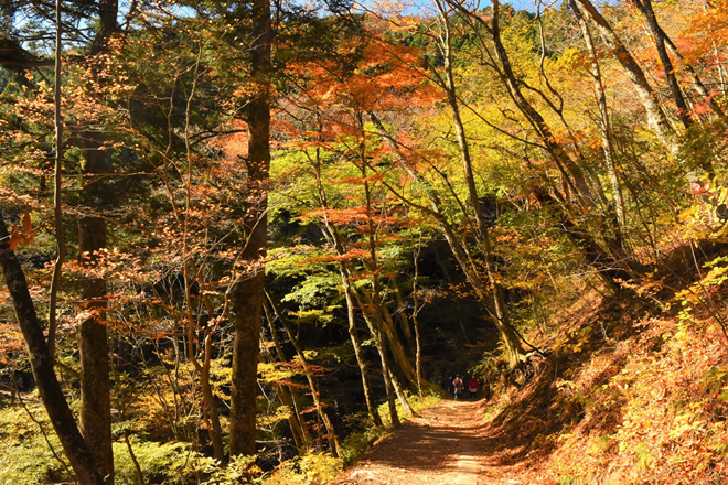 標高の高い場所ではモミジやカエデが色づき、鮮やかな紅葉が楽しめます。