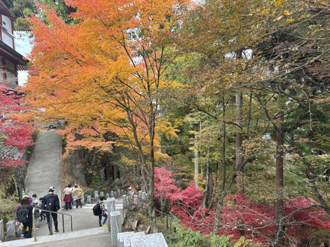 ケーブルカーでの移動中も山々が紅葉で鮮やかに彩られている様子を眺望できる。